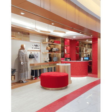 Setiap elemen dipasang dengan mempertimbangkan visibilitas produk serta menjaga jalur sirkulasi pelanggan tetap jelas dan teratur di dalam ruang.